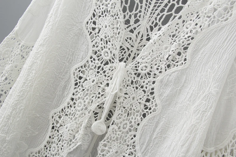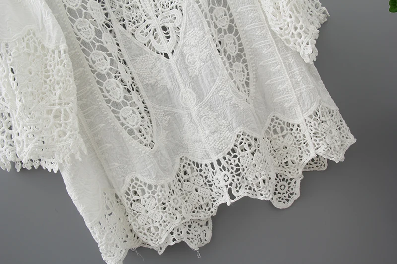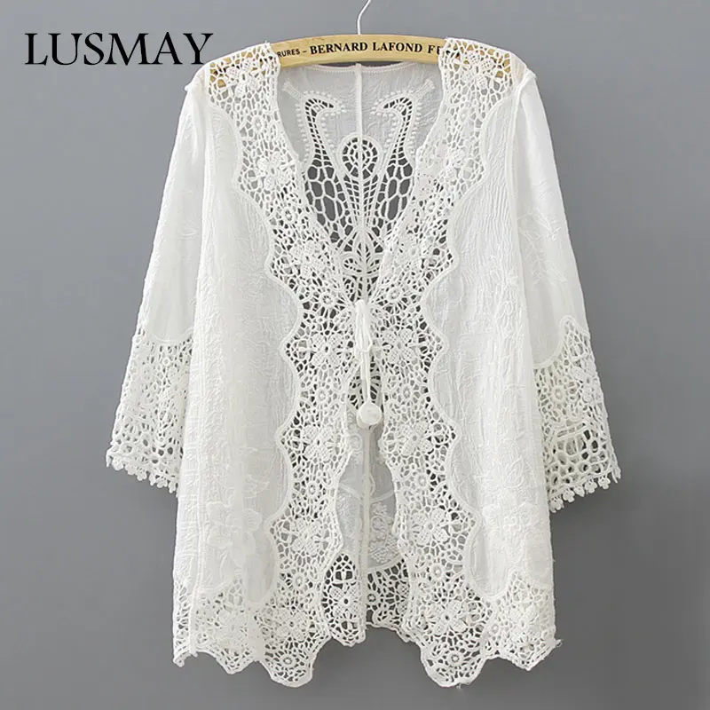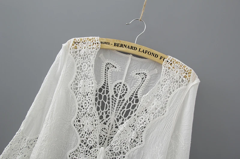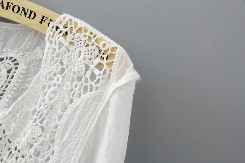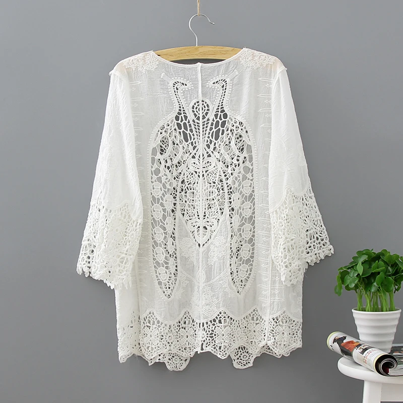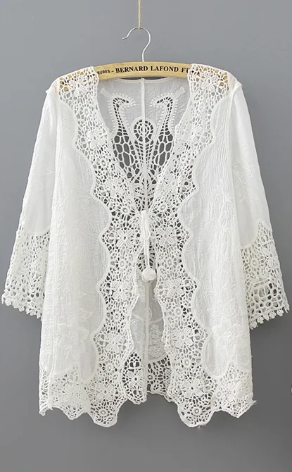Feature:Patchwork Hollow Out Lace Blouse Kimono Cardigan