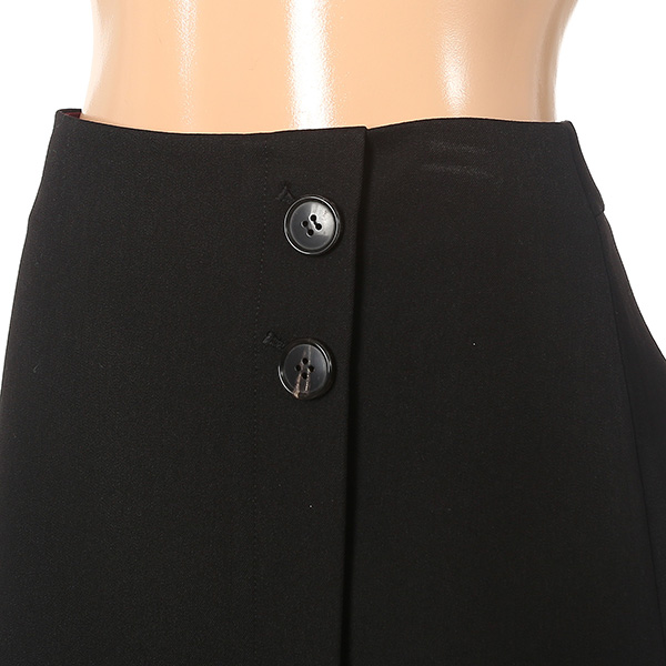 시크한 블랙 컬러에 단추장식으로 포인트를 준 미니 스커트 입니다. A 라인으로 슬림한 레그라인을 연출해주며 여성스러운 페미닌함이 돋보이는 아이템 입니다.