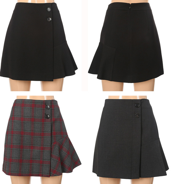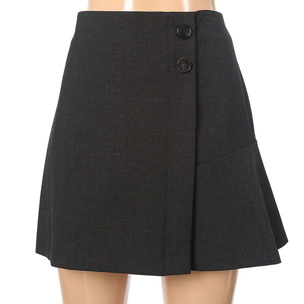 다크 그레이 컬러에 심플한 디테일에 단추장식으로 포인트를 준 미니 스커트 입니다. A라인으로 슬림한 레그라인을 연출해 줍니다.