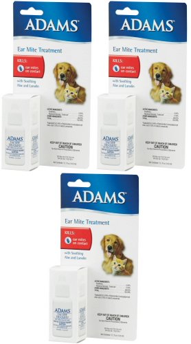 Adams Ear Mite Treatment offers relief for dogs and cats suffering from ear mites.Cleans ears to remove built-up wax and dirt. This product may be applied daily for 7-10 days. Repeat treatment in two weeks if necessary.Feature