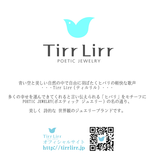 ●多くの幸せを運んでくるとされると言い伝えられるヒバリ…青い空と美しい自然の中で自由に羽ばたく軽快な愛の歌声…Tirr Lirr(ティルリル)…美しく詩的な世界観のジュエリーブランドです。