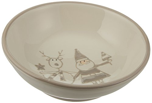 Pavilion Gift Company Holiday Hoopla Santa and Reindeer Ceramic Christmas Round Bowl, 6.5", Gray