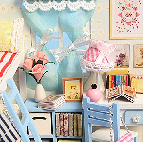 -. Feature : It's need your DIY model,all furnitures and accessories shown in the pictures are included. With Dust Proof Cover and Led Light / Each steps has pictures to show and help you how to assemble by our electronic instruction. (please kindly email us if we not send it to you) / Finished Product Size:5.7"X4.1"X4.8";Weight:1 pounds;Assembling Time: 1-3 days,1:24 scale / Some DIY tool should you prepared,such as rules,knives.This item can not be installed music box,so not include the music box. / DIY dollhouse is the IDEAL Birthday/Christmas/Valentine's Day GIFT to your lover, family, kids,friends,it can express your great love due to it made by yourself.
