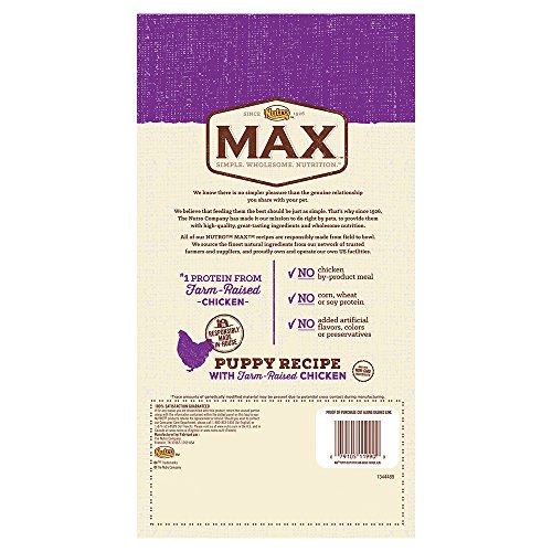-. Binding : Misc. -. Brand : Nutro -. Label : Nutro Max Dry Dog Food -. Manufacturer : Nutro Max Dry Dog Food -. PackageQuantity : 1 -. ProductGroup : Pet Products -. ProductTypeName : PET_SUPPLIES -. Publisher : Nutro Max Dry Dog Food -. Studio : Nutro Max Dry Dog Food -. Title : NUTRO MAX Natural Puppy Dry Dog Food