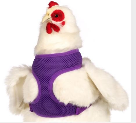Studio : My Pet Chicken Publisher : My Pet Chicken Binding : Misc. Product Description Have a pet chicken you'd like to take for a walk? Now you can! This chicken harness won the 2015 Global Pet Expo Most Outrageous New Pet Products award. Not everyone has a farm to let their chickens roam on, nor is everyone comfortable with free ranging their birds. This harness will finally allow you to safely walk your beloved pet and give them a chance to explore. What a conversation starter! Leash sold separately. Sizes: XS - Select: Bantam/Juvenile, these are for your Bantams and juvenile birds; 2 - 3 pounds S - Select: Standard Hen, these will fir birds 3.5 to 5.5 pounds. Examples: Ameraucana, Andalusian, Campine, Dominique, Hamberg, Leghorn, Old English Game Hen, Phoenix, Polish, Sultan M - Select: Rooster/Extra Large Hen, for birds 5.5 and above. Examples: Australorp, Barnevelder, Buckeye, Chantecler, Delaware, Faverolles, Marans, Naked Neck, New Hampshire, Plymouth Rock, Rhode Island Red, Sussex, Welsummer, Brahma, Cochin, Cornish, Jersey Giant, Orpington, Wyandotte L- (not offered at this time, as our turkeys don't appreciate the harnesses) Birds that are not typical of the breed such as those either under or over weight must be assessed individually. 0