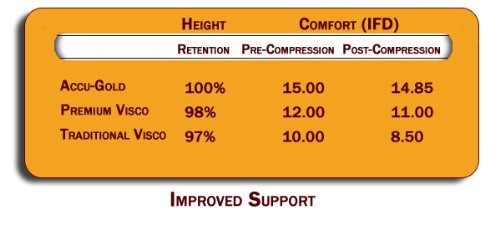 - Feature : Assembly required. Three separate layers of foam and removable expandable mattress pad cover. / Two 3" layers of Accu-Flex Superior Support Foam for spinal alignment and transitional support. / 4" layer of Accu-Gold 5.3 Visco Elastic Memory Foam for optimal comfort / Shipped in 3 separate packages delivered to your door. Made in the USA! / 30 NIGHT SLEEP TRIAL! 20 Year Accutex Manufacturer Limited Warranty! Visco Elastic Memory Foam