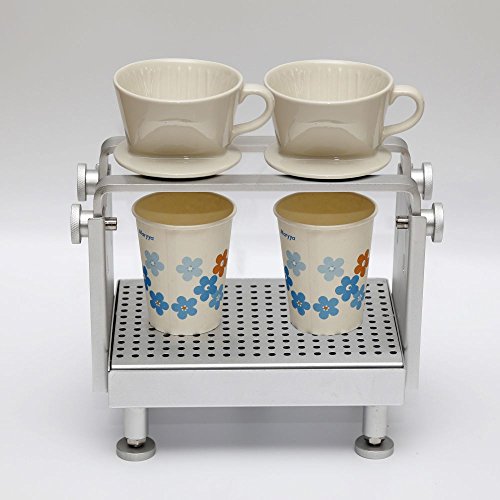 -. Brand : CM&TEA -. Color : Silver -. EAN : 6924363001013 -. Feature : Made by aluminum and food grade 304 stainless steel, durable and high quality. / Adjustable height for different situation, fit most of high or low coffee cups. / Buil-in water tank,able to storage exceed water and drain out easily. / Fast delivery, shipped by DHL and receive your package within 1 week. / 2 cups or 4 cups total 2 size available, -. Label : CM&TEA -. Manufacturer : CM&TEA -. PackageQuantity : 1 -. ProductGroup : Kitchen -. ProductTypeName : KITCHEN -. Publisher : CM&TEA -. Size : 8'Hx6'Wx9.5'L -. Studio : CM&TEA -. Title : Cm&tea Adjustable Aluminum Coffee Dripper Stand Station (2 Cups)