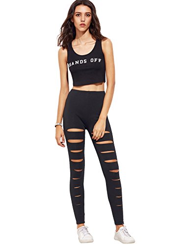 -. Binding : Apparel -. Brand : SweatyRocks -. Color : Black -. Department : womens -. Feature : main material: 95%Polyester, 5% spandex / Great fit and soft material with high stretch. / ripped skinny pants for lounging room and workout. / Model Measurement: Height: 176cm/5'9" Bust: 88cm/35" Waist: 59cm/23" Hip: 89cm/35" Wear: Small / Please refer to the size measurement below before ordering -. ProductGroup : Apparel -. ProductTypeName : PANTS -. Title : SweatyRocks Women's Cutout Leggings Ripped Skinny Yoga Workout Pants Active Tights