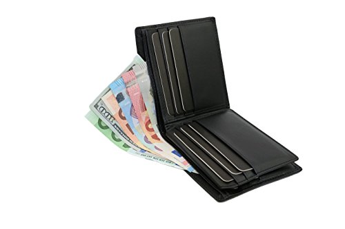 -. Feature : REID MATERIAL Features a unique military grade shielding technology & proP.R.Ietary blocking material. Protect your RFID Credit Cards, Debit Cards, ID Cards from being stolen. / MEASURES 4 1/3 x 3 4/5 x 3/5 inches; 3.03ounces / BIG CAPACITY- This is a simple, clean, traditional bifold design wallet Includes 9 card slots, 2 bill pocket ,1 ID pocket, 2 hideaway slots. The slim profile doesn't bulk up and easily slips in and out of your pocket or purse, not only offers security also meet your daily needs. / IDEAL FOR TRAVEL: Whether you're an avid traveler, use public transportation, live overseas, or enjoy vacations abroad, this wallet combines practicality with security. Wherever you do, you will be able to store currency bills and cards and be shielded against unwarranted RFID scans. While others suffer identity theft, you won't. / GUARANTEE - We know you'll love our wallet as much as we do, if for any reason you're not 100% SATISFIED, let us know and our customer service team will make things right: full refund or a free replacement, whichever you prefer.