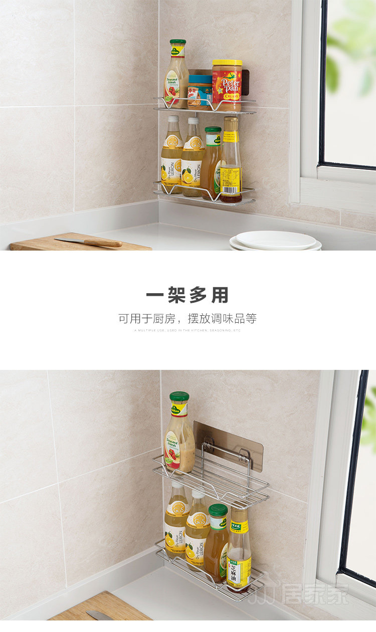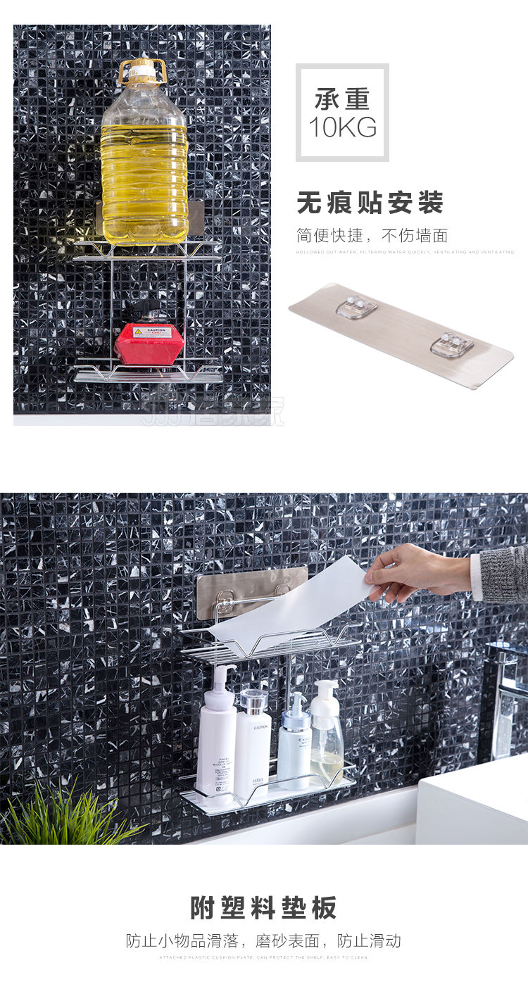 Summary: Bathroom shelf, double deck design, stainless steel plating process, draining and draining, with plastic backing plate, also for kitchen.