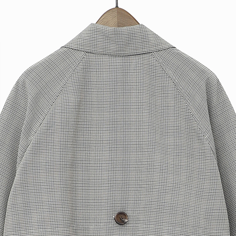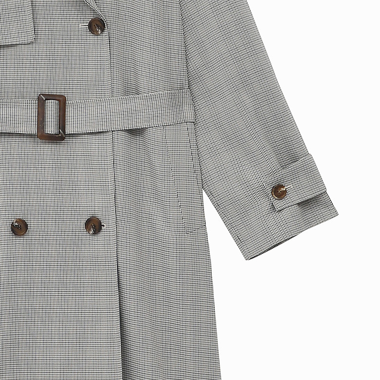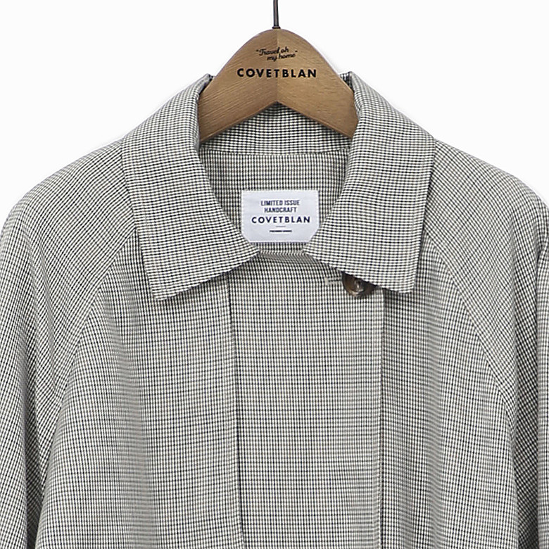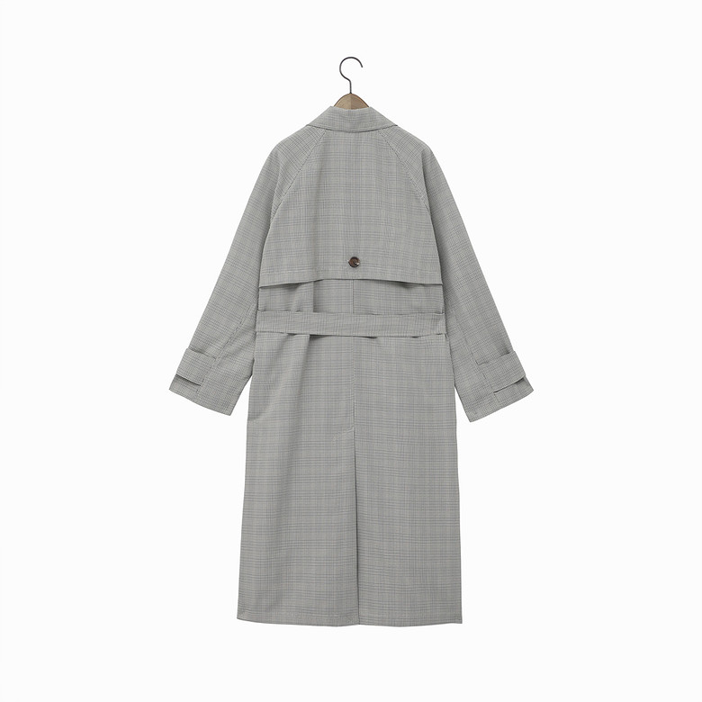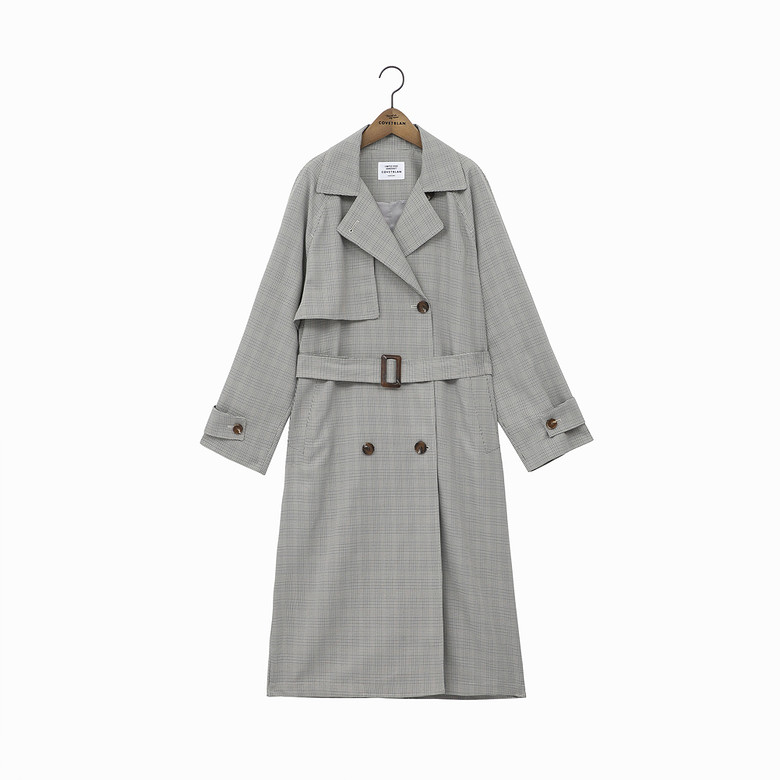 다가오는 계절에 착용하기 좋은 모던한 체크 트렌치코드입니다