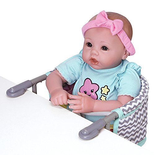 Include your child's baby doll at meal time with Adora's Table Feeding seat is perfect for nurturing role play. Easily attaches to most flat table tops. New contemporary pattern for boy or girl!