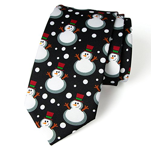 (Spring Notion)/Accessories/Ties/DIRECT FROM USA/Spring Notion Men's Printed Microfiber Christmas Theme Tie, Black Snowman