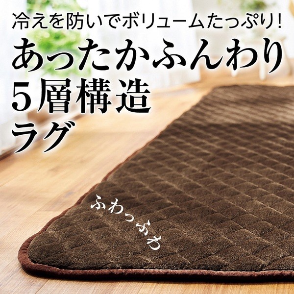 【商品名】ふっくら5層構造断熱ラグマット 【長方形 130cm×180cm】 厚み約28mm ホットカーペットカバー/床暖房対応 ベージュ