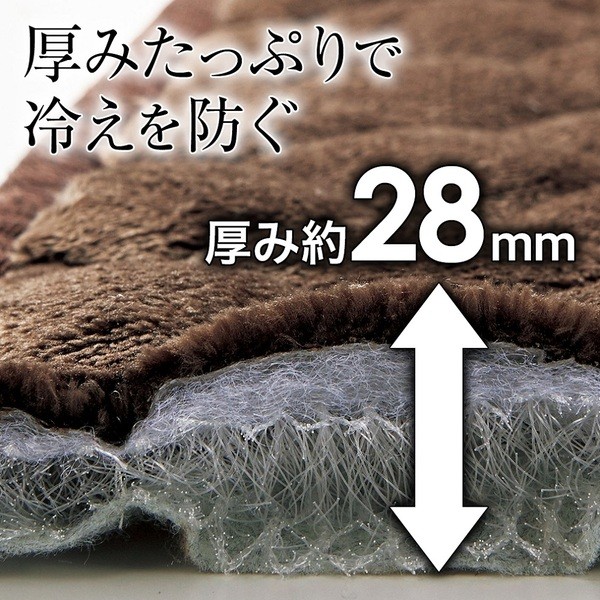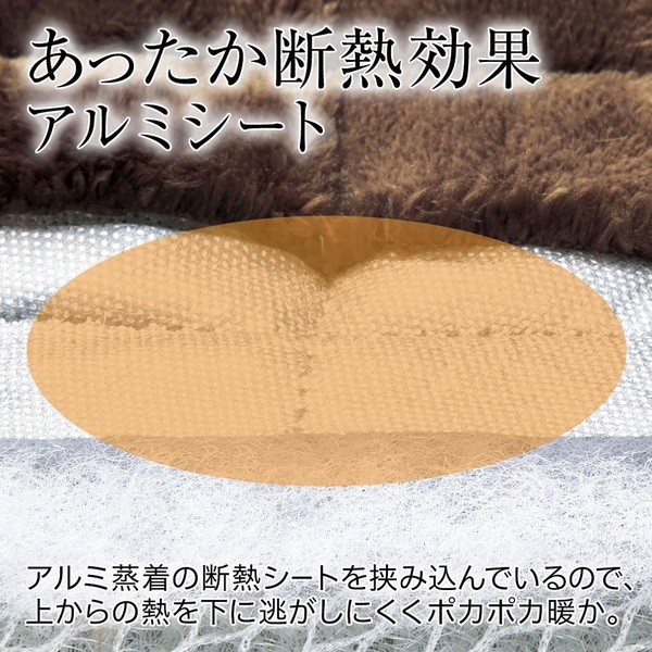 アルミ蒸着の断熱シートを挟み込んでいるので、上からの熱を下に逃がしにくくポカポカ暖か。