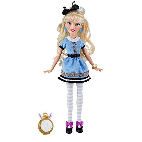 A new generation of Disney heroes and villains is taking center stage! Meet Ally, the daughter of Alice in Wonderland. Curious like her mother, she's finding wonder in Auradon. A lover of fashion, Ally inspired this stylish doll, adorned in a lovely blue dress with floral detail, striped stockings, shoes, and fun accessories. Also included is a sticker representing her signature icon. This doll is a beautiful addition to any child's modern-day Disney adventures. Copyright Disney Hasbro and all related terms are trademarks of Hasbro.Feature
