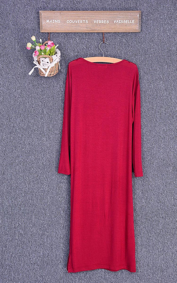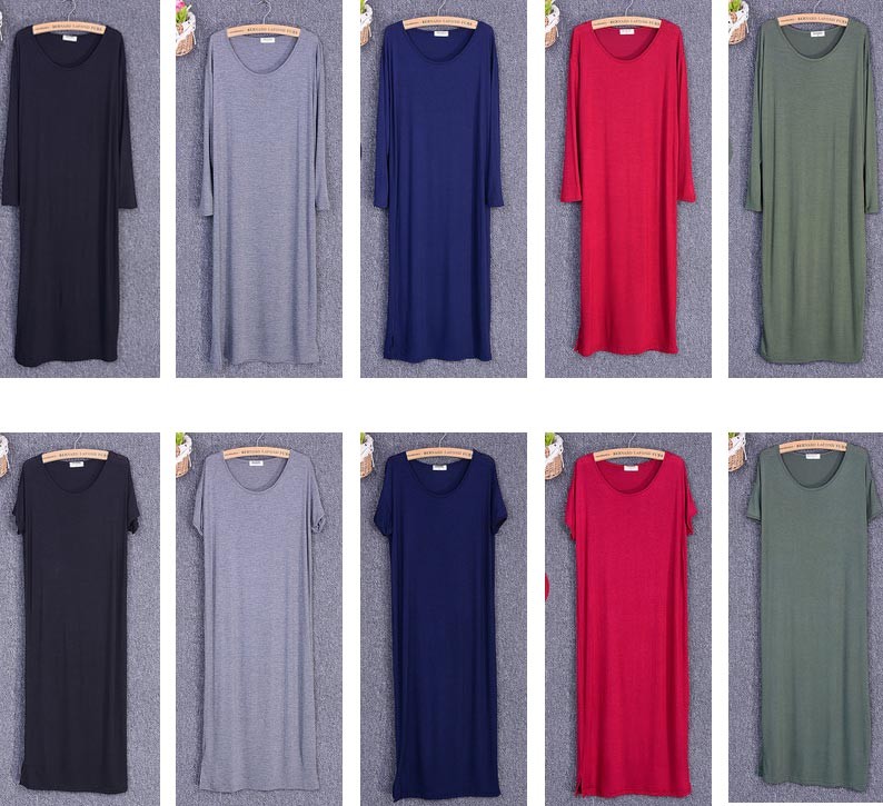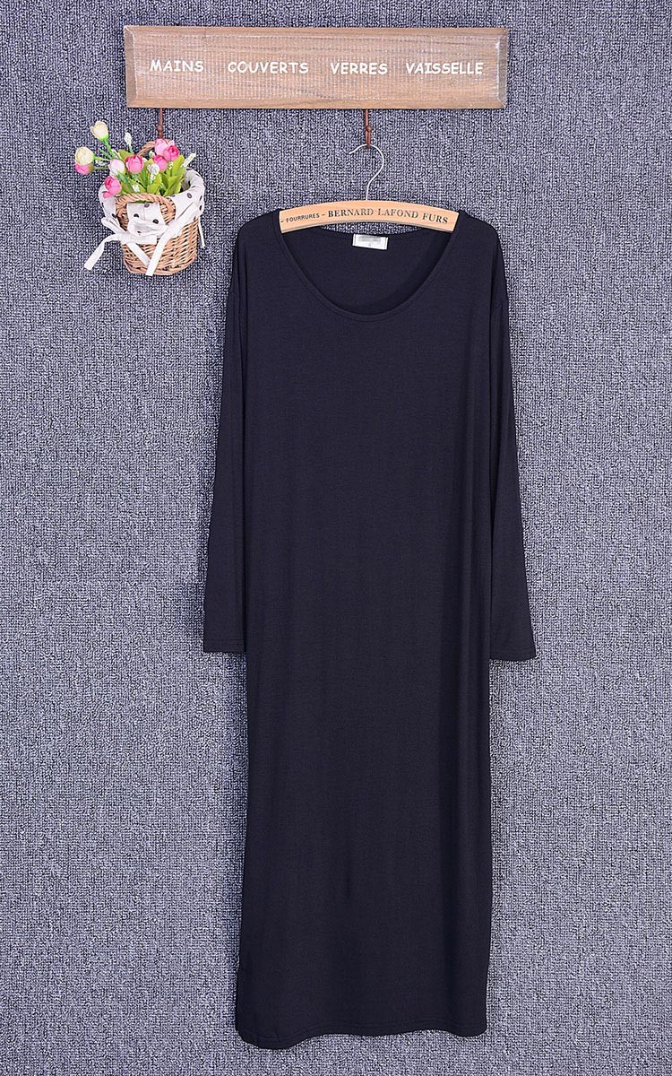 ラウンドネック・ひざ下丈のロングTワンピースの長袖タイプと半袖タイプ♪