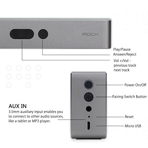 GranVela Rock MUBOX Portable Bluetooth 4.0 Aluminum Wireless Stereo Speaker with Two Strong Speaker Drivers, A Powerful Passive Bass Ratiator, With AUX Input & Built-in Mic For Calls (Black)
