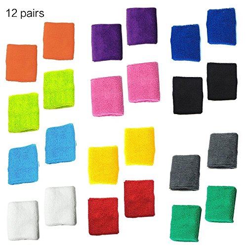 12 different colors Cotton Sweat Sports Basketball Wristband -(12Pairs)