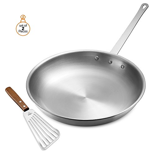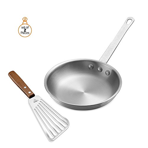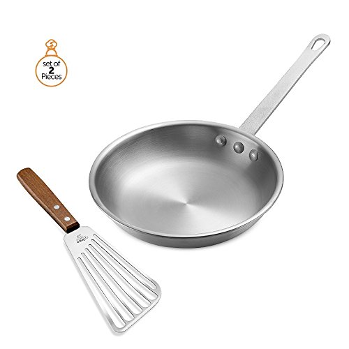 Be it a restaurant, hotel or your lovely home. If you could have a frying pan, you could end up making your favorite foods. And, if you have a fish spatula to add to this, you can even cook delicate foods like fish, egg, etc. with perfection and wonderful presentation. That is why, Royal Industries has brought this cookware set of Aluminum fry pan and a fish spatula. This 8-inch aluminum fry pan will help you in frying vegetables, stewing meat, poaching eggs, and a lot more. The fish spatula with a 6.5-inch blade will ensure that you can cook delicate food items like fish fillet, egg omelet and a lot more easily and conveniently. The long riveted handle in the frying pan will help you in easily stewing meat, frying vegetables and will also help you in transferring the dishes from the pan to serving utensils safely while the food is hot. The wooden handle in the egg turner is heat-resistant so that you will have a safe time while you make your favorite food items. Buy this set of frying pan & fish spatula and enjoy making delicious foodsFeature