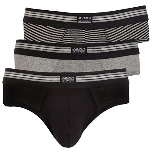 -. Title : Jockey 3-Pack Cotton Stretch Stripe Briefs, Black/Grey