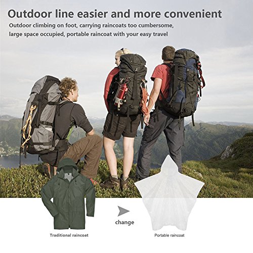 -. Feature : Premium Material - The disposable raincoat made of biodegradable material and the poncho ball made of plastic are of high quality, environmentally friendly, durable and waterproof / It is a foldable outdoor essential thing in your travel. You can enjoy your hiking or camping even the rain is coming / These are just what you need for attending ball games, outdoor concerts, and other events where you might get caught in the rain. Also used by students, gardeners, and construction workers / Material and Use: Thin PE environmentally friendly. One size raincoat: 120*90cm, fits adults and children and one-time use. Ball Diameter: 6.5CM / Nice Gift - Such a convenient raincoat ball would be a nice gift for your family, friends and colleagues, it can provide attentive protection for the gift owner just like you were right behind him/her