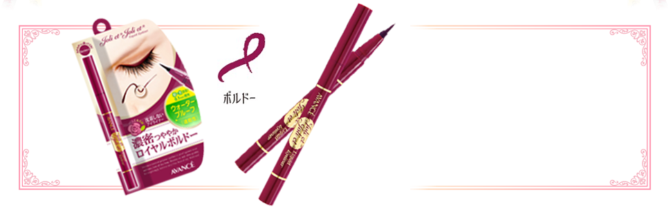 「アヴァンセ ジョリ・エ ジョリ・エ ブラック(リキッドアイライナー)」は、汗や涙でにじまない、艶やか目もとを長時間演出し続けるアイライナーです。穂先0.1mmのコシのあるブラシで自在なアイラインを演出。速乾性で塗り重ねも自由自在。お出かけ前や移動中のメイクも簡単です。お手持ちの洗顔料で簡単に洗い落とせ、色素が残らないので、目もとに負担がかかりません。鮮やかな漆黒ピュアブラック。