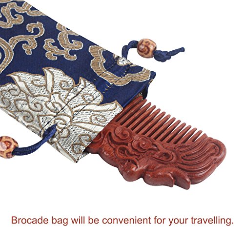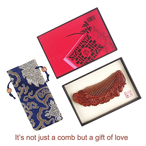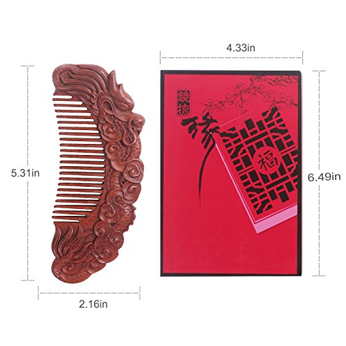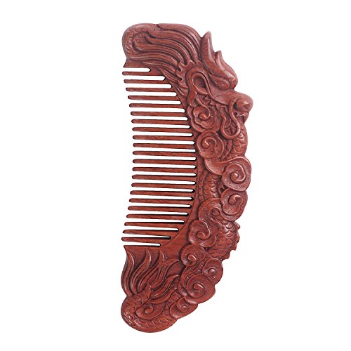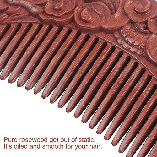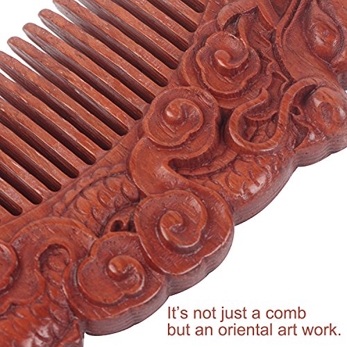 Wood Comb(Dragon) Hand Carved FRANKTECH Natural Rosewood with Oriental Exotic Hair Care Gift Anti-Static No Snag Wooden Comb