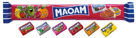 -. Feature : Pack of five, each is 22grams (total of 110grams) / Each are different flavor / Lots of fruit to chew offer the Maoam cubes in packs of 5. For one the way just the right thing. In the following flavors: cherry, raspberry, orange, lemon and coke.