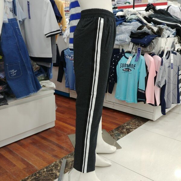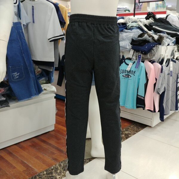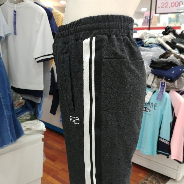 면 트레이닝 바지입니다.챠콜 칼라 바탕에옆 선의 화이트 테잎 디자인이 돋보입니다.스트레이트 핏으로 슬림형보다 폭이 살짝 넓어 굉장히 편한 디자인입니다.보는 것 보다 입어야만 멋스러움을 알 수 있는 바지입니다.