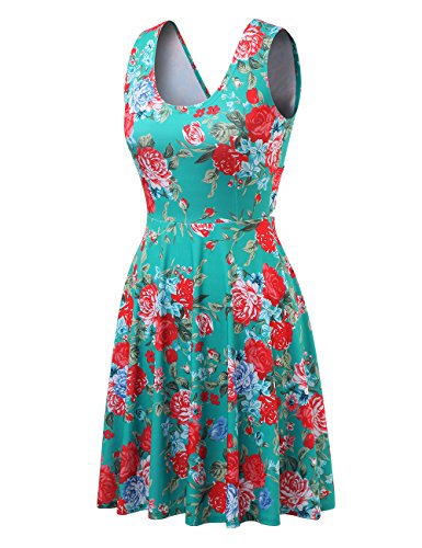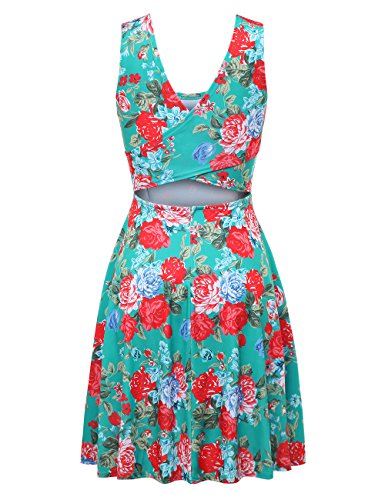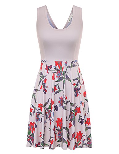 FSOOG Women Summer Beach Casual Flared Floral Tank Dress