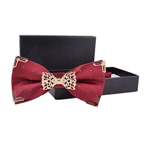 -. Feature : Brand: Hello Tie Bow Tie / Style: Pre-tied banded bow tie / Material: Polyester silk,metal / Neck size: Up to 45cm / length: 12cm,Width: 6cm