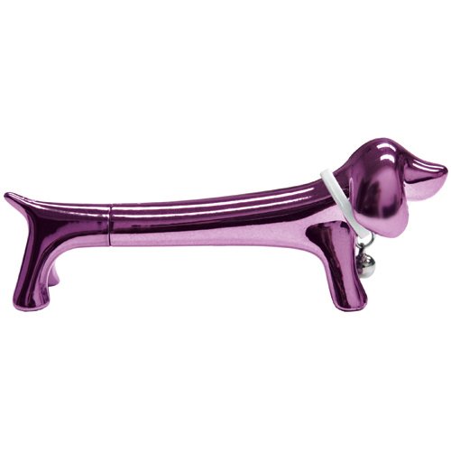 - Playful dachshund with flexible collar and bell that jingles as you write