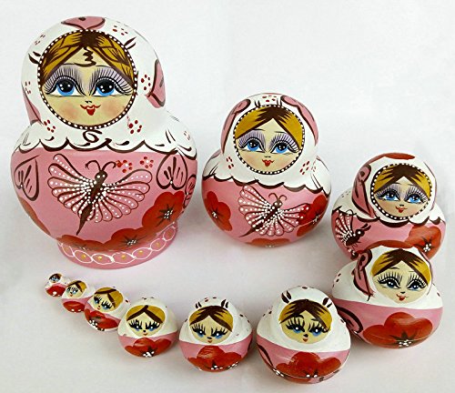 -. Title : 10pcs Hand Painted Cute Wooden Russian Nesting Dolls Dried Basswood Pink Butterfly Girls' Gift