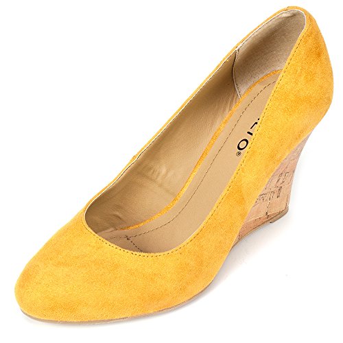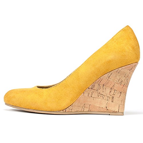 Product DescriptionLightweight suedette slip on cork wedge with a padded heel for extra comfort.0
