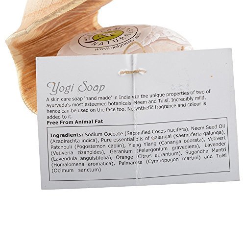 Holy Lama Natural Handmade Soap - Yogi (100 gm / 3.5 oz) Ayurvedic Organic Tulsi Neem Soap with a unique blend of coconut and essential oils. Moisturizing hand soap, facial cleanser and bath soap