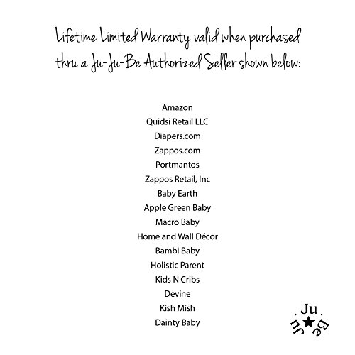 The Ju-Ju-Be Onyx Collection Paci Pod Pacifier Holder is a functional case that holds (2) paci's close to you with a wrist strap and swivel hook. Is it even possible to be too organized? We don't think so. We think being organized helps keep our sanity. We appreciate having things in their place with easy access, and keeping things clean! The Paci Pod helps you achieve both. The inner lining is protected with an Agion natural antimicrobial treatment that inhibits and reduces the growth of odor-causing bacteria, mold and mildew. The outer fabric is treated with Teflon fabric protector, making it easy to repel stains and keep clean. The Paci Pod's interior has elastic to hold each pacifier in place. A wristlet strap with a detachable swivel clip keeps this accessory close to your diaper bag or stroller, eliminating the chance of losing those pacifiers. This pacifier container is machine washable and measures 3-inches by 3-inches by 1.75-inches in size. The Black Magic print is black and white stripes with black and blue floral pattern on a grey lining. The print is accented by all black, metal hardware. All Ju-Ju-Be Bags come with a Lifetime Limited Warranty against manufacturing defects when purchased from an Authorized Ju-Ju-Be Dealer. Authorized Dealers can be found in the images. Founded in 2005, Ju-Ju-Be is a Southern California company that uses science, style, and attitude to create diaper bags, purses and other fashionable accessories. Ju-Ju-Be assimilated the most advanced technology possible to create a stylish and intelligent product line that's unrivaled in the industry.Feature