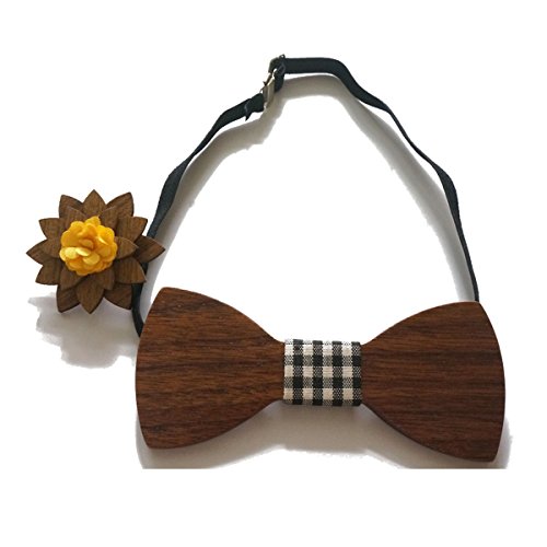 -. Title : Sunny Home Men's Handmade Wooden Pre tied Bowtie Wooden Lapel Flower Set for Gifts