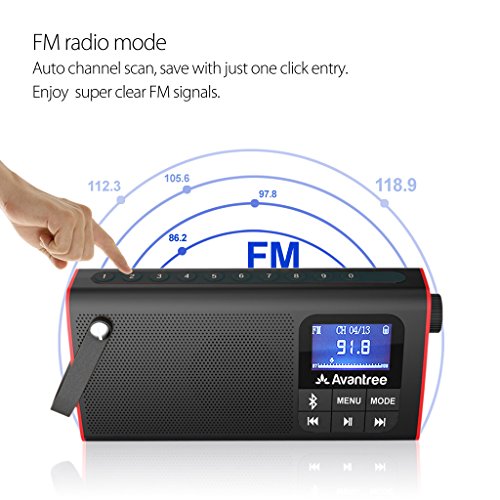 Avantree 3-in-1 Portable FM Radio with Bluetooth Speaker and SD Card Player, Auto Scan & Save, LED display, Rechargeable Battery - SP850