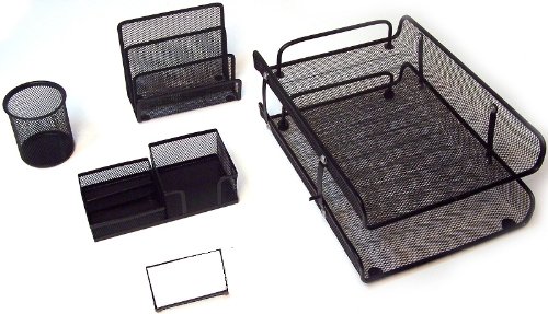 Majestic Goods Office Supply Mesh Desk Set, Black 5 Piece (XQ767B)