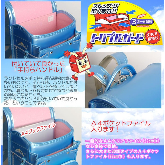 이 란도세루(초등학생이 어깨에 매는 가방)는 A4북 파일 대응 와이드 사이즈.