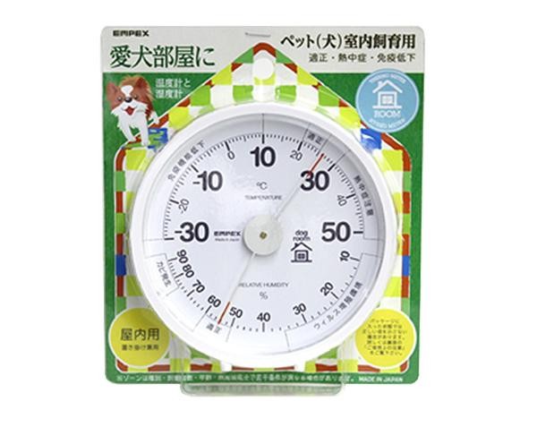 | 愛犬の室内飼養の環境づくり・管理にお使い頂ける温湿度計です。免疫機能低下や熱中症、ウイルス増殖対策などの目安として最適です。シンプルで使いやすく、クリーンホワイトのケースはどの部屋にもマッチします。 |