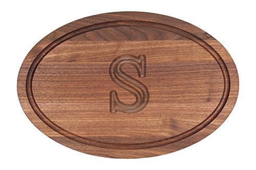 BigWood Boards W400-S Oval Bar/Cheese Board, 9-Inch by 12-Inch by 0.75-Inch, Monogrammed "S", Walnut