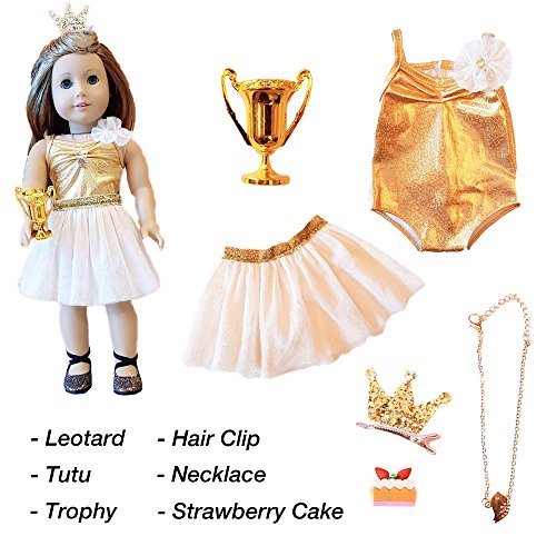 Ballerina Outfit Set: Leotard, Tutu, Hair Clip, Necklace, Trophy and Strawberry Cake.
