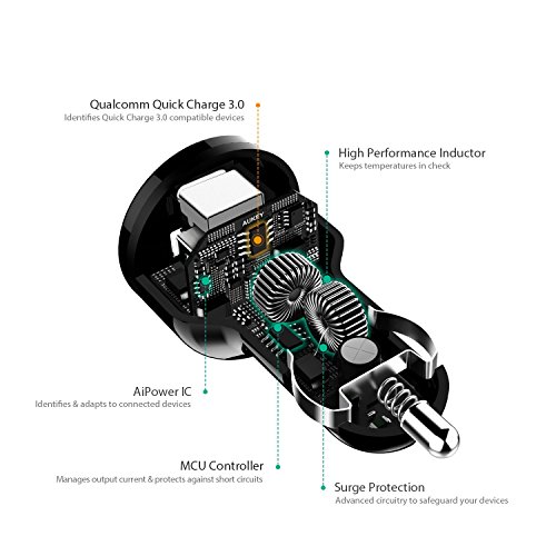 -. Feature : Refuel devices up to 4x faster than conventional charging with Qualcomm Quick Charge 3.0 / 5V 3A USB Type-C port + Quick Charge 3.0 USB-A port / Compatible with all USB powered devices including Quick Charge 2.0 & Apple phones & tablets / Built-in safeguards protect your devices against excessive current, overheating, and overcharging / Package Contents: AUKEY CC-Y1 Car Charger, User Manual