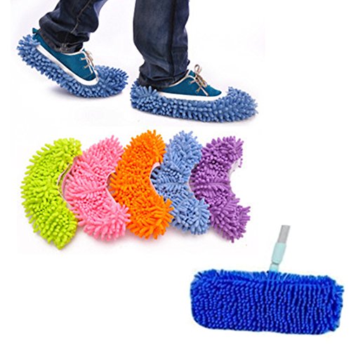 -. Feature : Size: 6.69 * 5.91 inches(unstretched), elastic cord design, not easy to fall off from your foot / Easily clean those out of the way places without kneeling or stooping / Can training or listening music or do other things you like while cleaning / Perfect for dust,dirt,and pet hair,this mop shoe cover is a great time saver / Package include: 5 pairs shoe covers