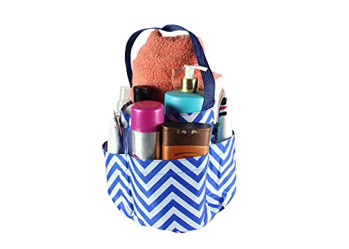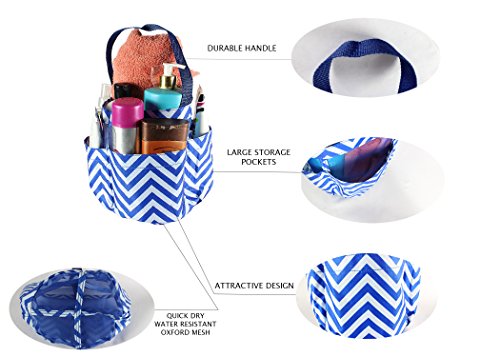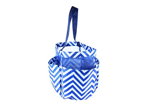 Cherlex Shower Caddy Mesh Tote - Quick Dry Hanging Bath and Toiletry Storage Organizer for College Dorms, Gyms and Travel - Includes Bonus Travel Mesh Tote with Carrying Bag (Blue Chevron)