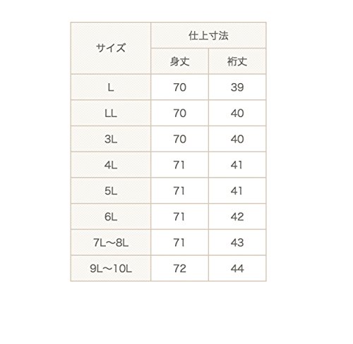 -. Feature : [サイズ]: L, LL, 3L, 4L, 5L, 6L, 7L~8L, 9L~10L / [身丈]: 70cm, 70cm, 70cm, 71cm, 71cm, 71cm, 71cm, 72cm / [裄丈]: 39cm, 40cm, 40cm, 41cm, 41cm, 42cm, 43cm, 44cm