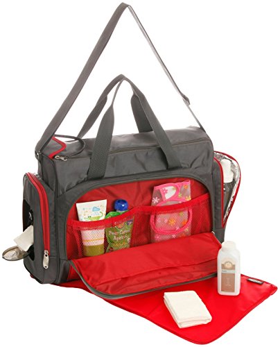 Ready to handle all of your Daiper Bag needs, the Graco Chili Red Duffle features the Smart Organizer System (SOS) that offers a space and a place of all of your travel and diapering needs. Insulated Bottle Pocket, Exterior hard wipes dispenser, Diaper Pockets and Changing Pad are all included. A spacious main compartment has room for all or mom's and baby's needs. When it comes to arrying the bag, an adjsutable shoudler strap and top handle make the options convenient and comfortable. The Chili Red fabric coordinates to the Graco Chili Red Gear, or makes as color statement on it's own.Feature