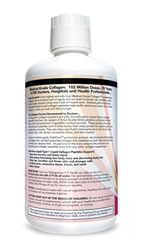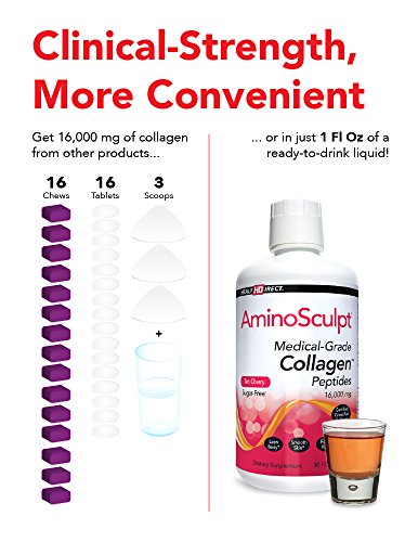 Around the age of 30, your body's ability to produce collagen diminishes. You feel and see the effects of this collagen deficiency every day in the mirror. As you age wrinkles form, skin dries, hair thins and dulls, nails become brittler, your joints lose flexibility, and your body loses its muscle tone. Aging is collagen loss. But AminoSculpt Sugar-Free can help. AminoSculpt Sugar-Free is the original anti-aging collagen peptide supplement. It is the only Type 1 collagen peptide supplement backed by 30 years of medical use and clinical research, and is the first liquid collagen protein with NO sodium benzoate or potassium sorbate. 90% of your body's collagen is Type 1 - and every serving of AminoSculpt provides you with a high dose of pure, absorbable, dipeptides and tripeptides from Type 1 collagen protein. The amino acids in these peptides are what your body needs to build and maintain healthy collagen, so you can look and feel younger than ever. AminoSculpt Sugar-Free is a true medical-grade, whole food supplement. We start with pasture-raised, certified grass-fed collagen protein and follow a rigorous 15 step manufacturing process. Every one of the ingredients in AminoSculpt Sugar-Free is GRAS (Generally Recognized as Safe) by the FDA, is non-GMO and screened for identity and purity according to CGMP (Current Good Manufacturing Practices). The manufacturing facility is audited the FDA and even inspected by an independent quality control agency. AminoSculpt Sugar-Free is the highest concentrated, most convenient collagen peptide supplement available. High dose collagen provides superior beauty benefits, plus additional ones like improved weight loss, joint health, and sleep. You can get high doses of collagen from other products, but you'd need to take 16 chews, 16 tablets, or mix 3 scoops of powder with water. Or, you can take 1 Fl Oz of ready-to-drink AminoSculpt Sugar-Free. AminoSculpt Sugar-Free is gluten-free, sugar-free, soy-free and paleo-friendly.Feature